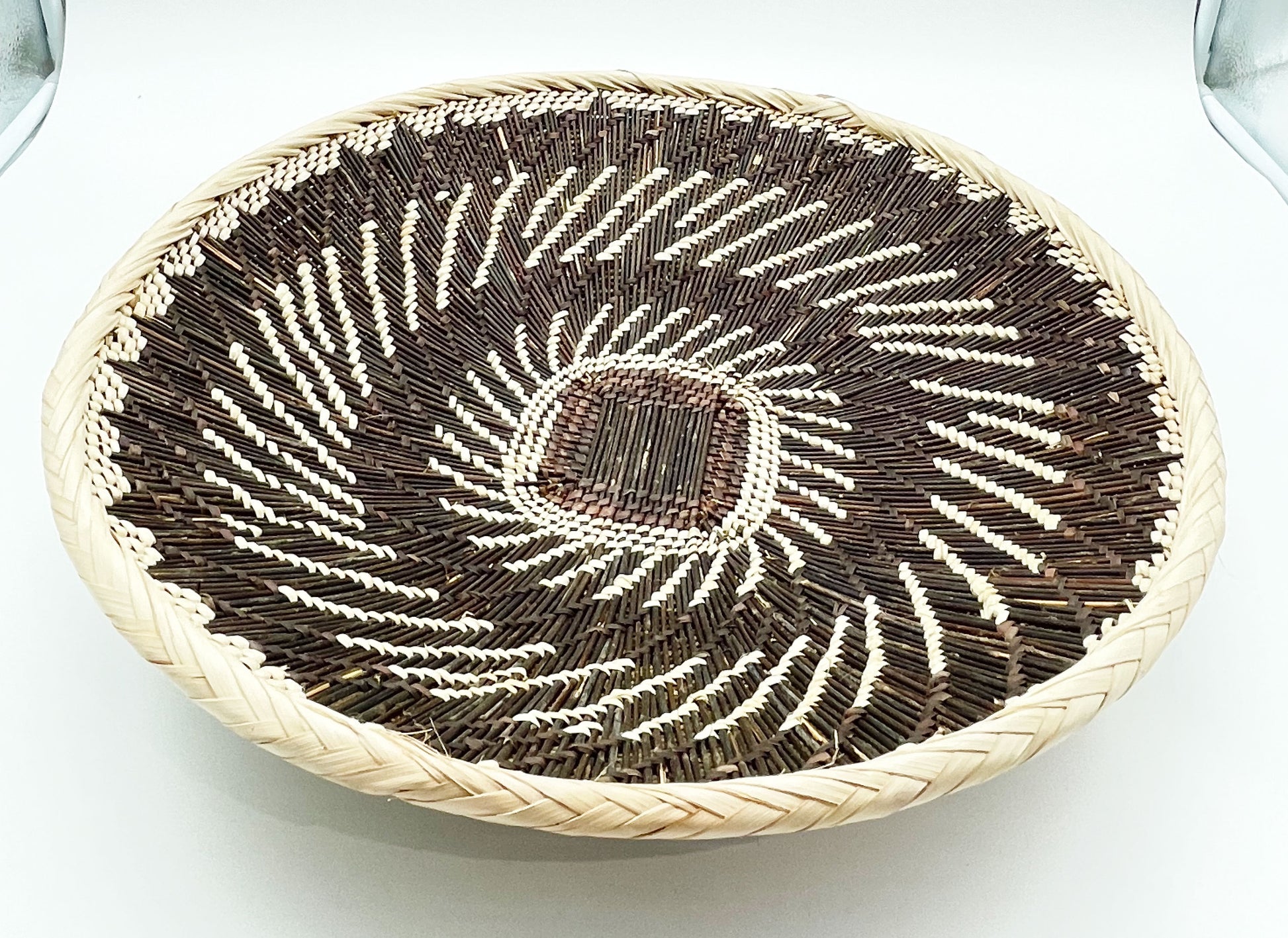 Authentic Hand woven basket. Perfect for use as a bread or fruit basket, or for hanging on a wall.