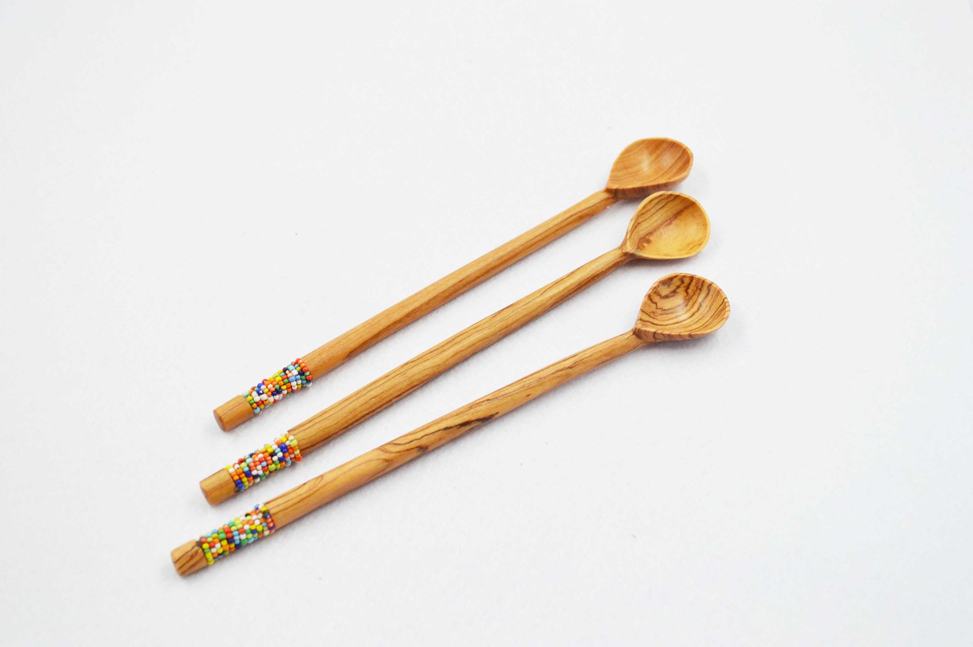 Olivewood long handled beaded Spoon