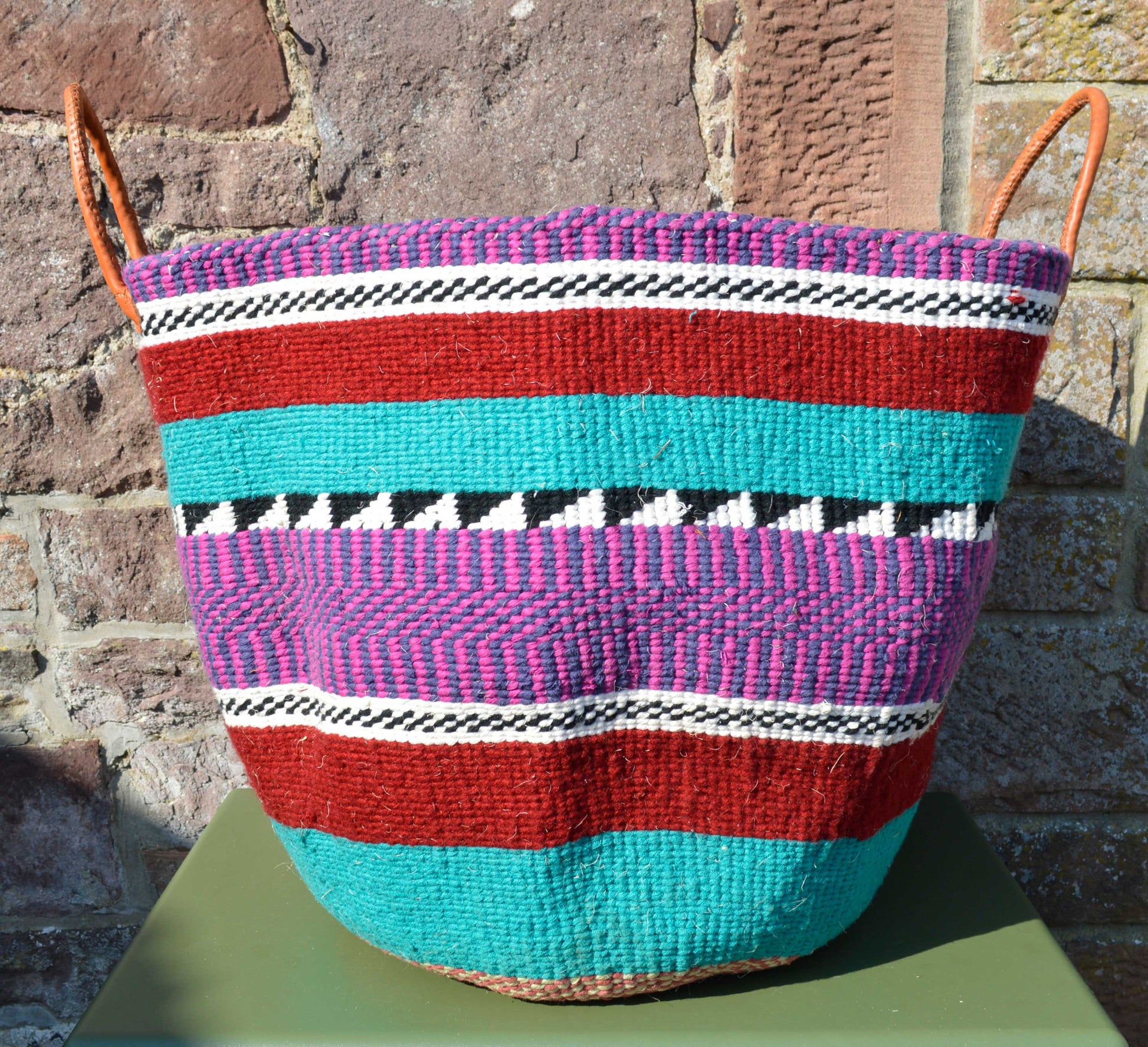 Extra Large Woollen Kiondo style Basket with leather handles. Two Pink Options