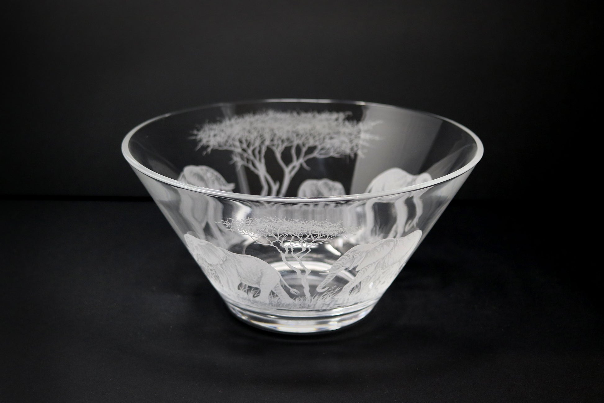 Glass Bowl, Engraved with Elephants in Banana Fibre Presentation Box
