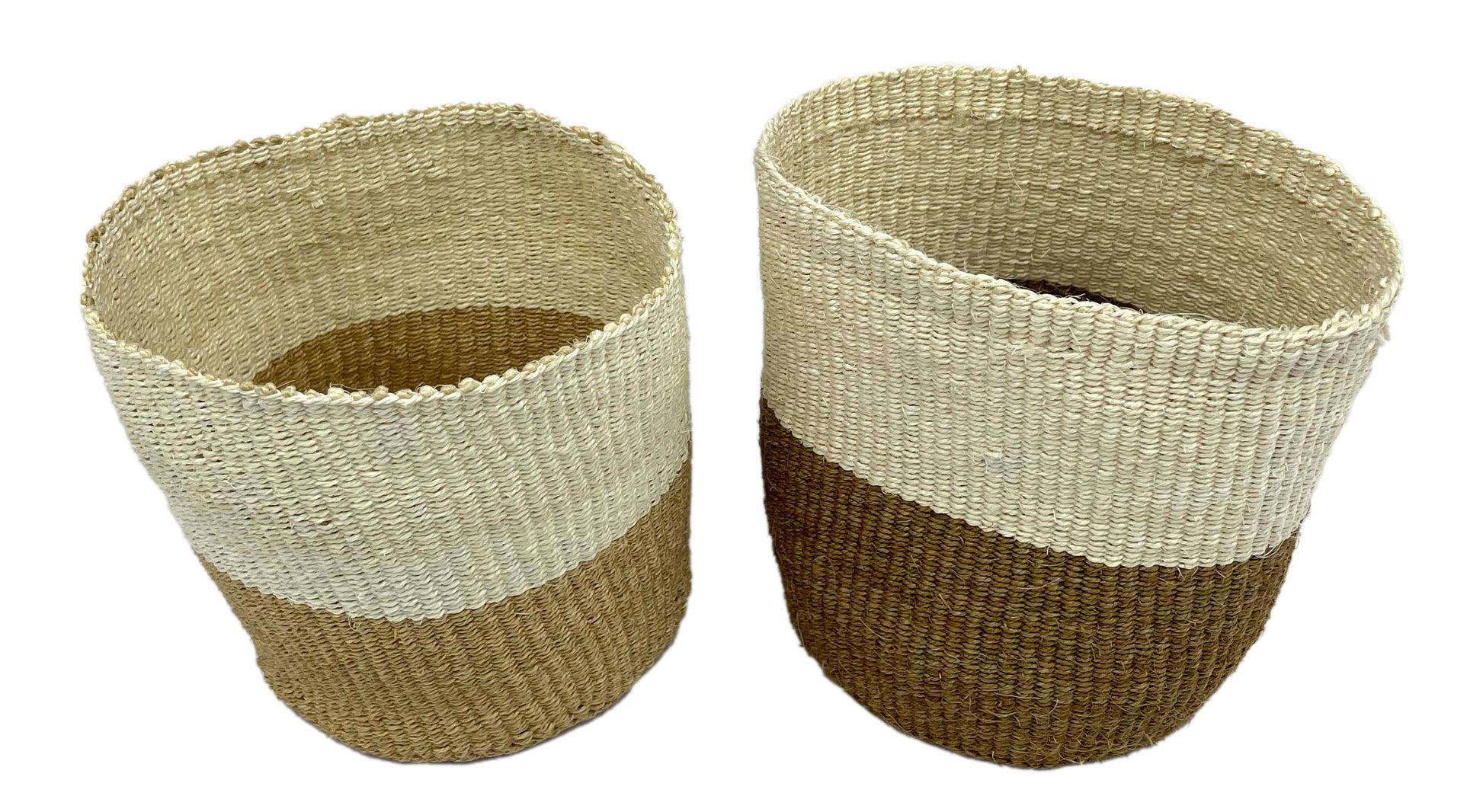 Large Beaded Fine Sisal Basket Containers-Ivory & Mocha