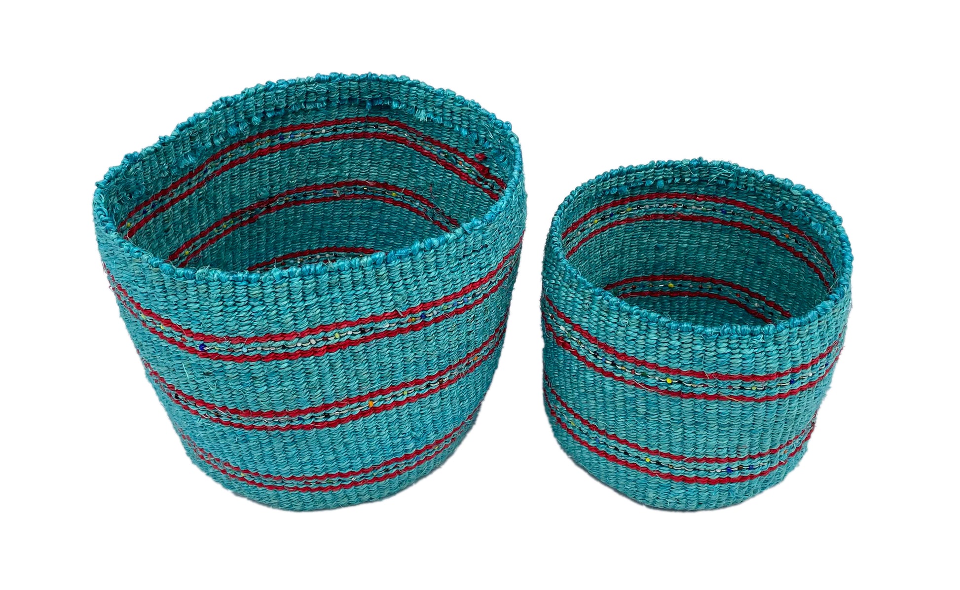 Large & Medium Beaded Fine Sisal Basket Containers-Turquoise