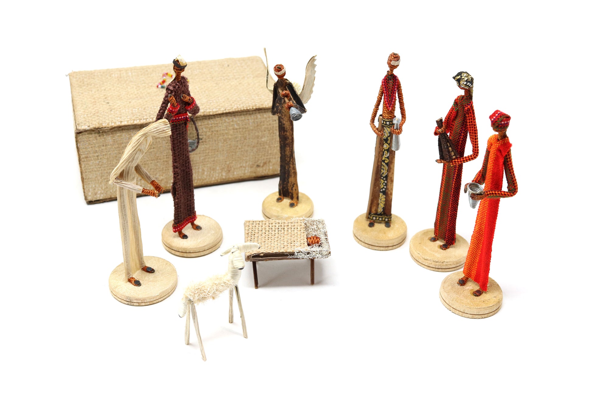 Hessian Box containing the Holy Family, an Angel, and the three Wise Men (8pcs).