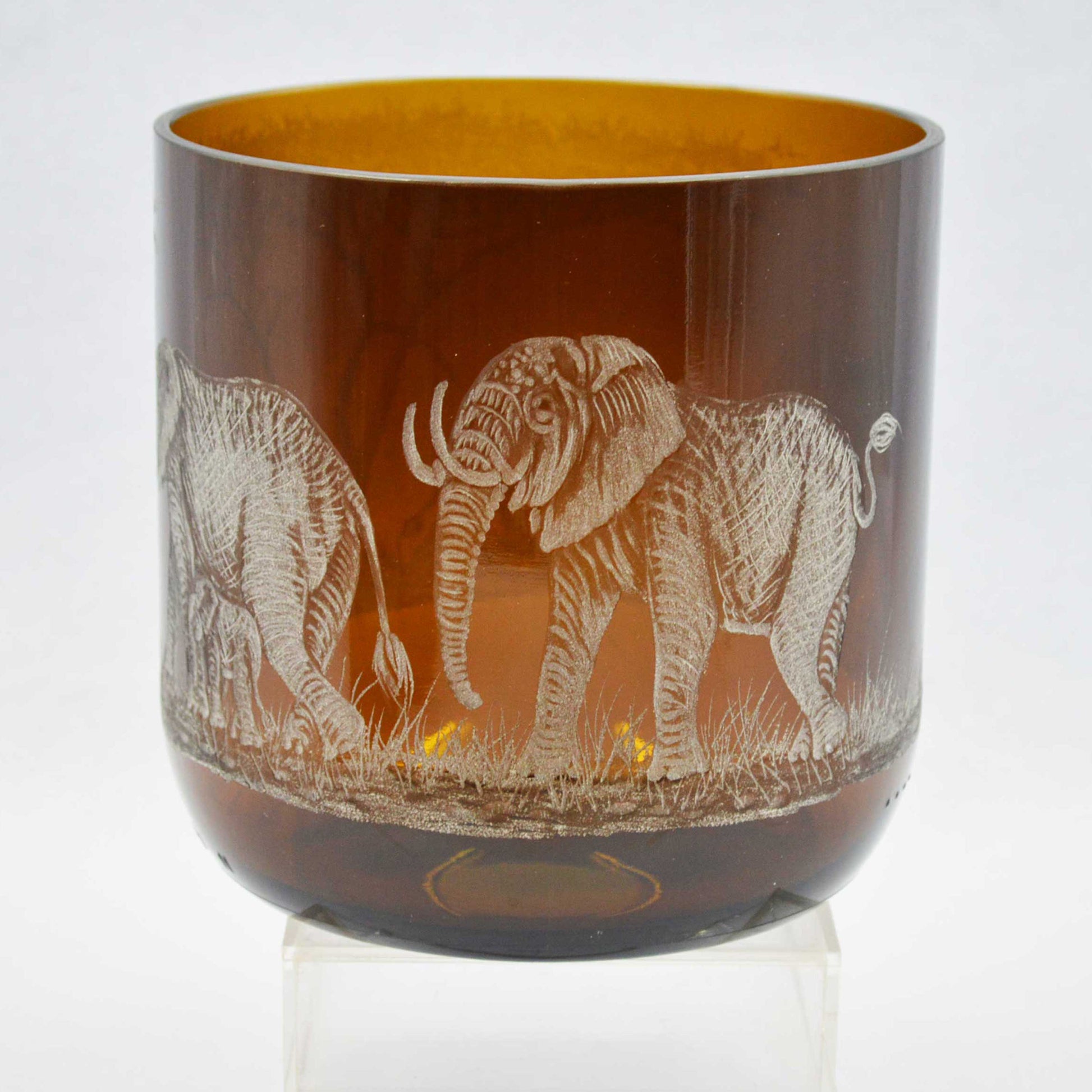 Storm Lantern Large Brown Glass, Engraved with Elephant Family