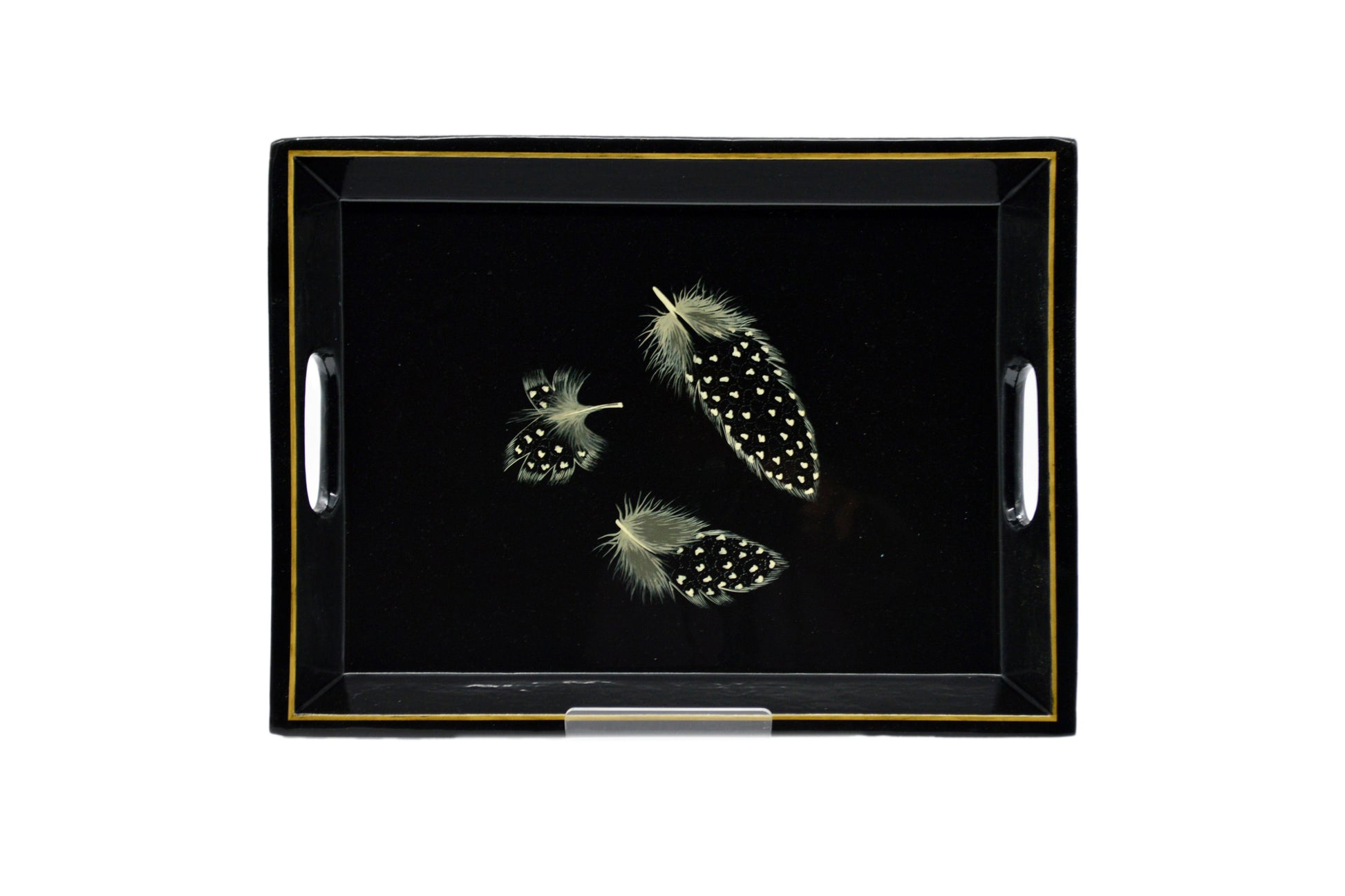 Drinks Tray Hand Painted Guinea Fowl Feathers on Black