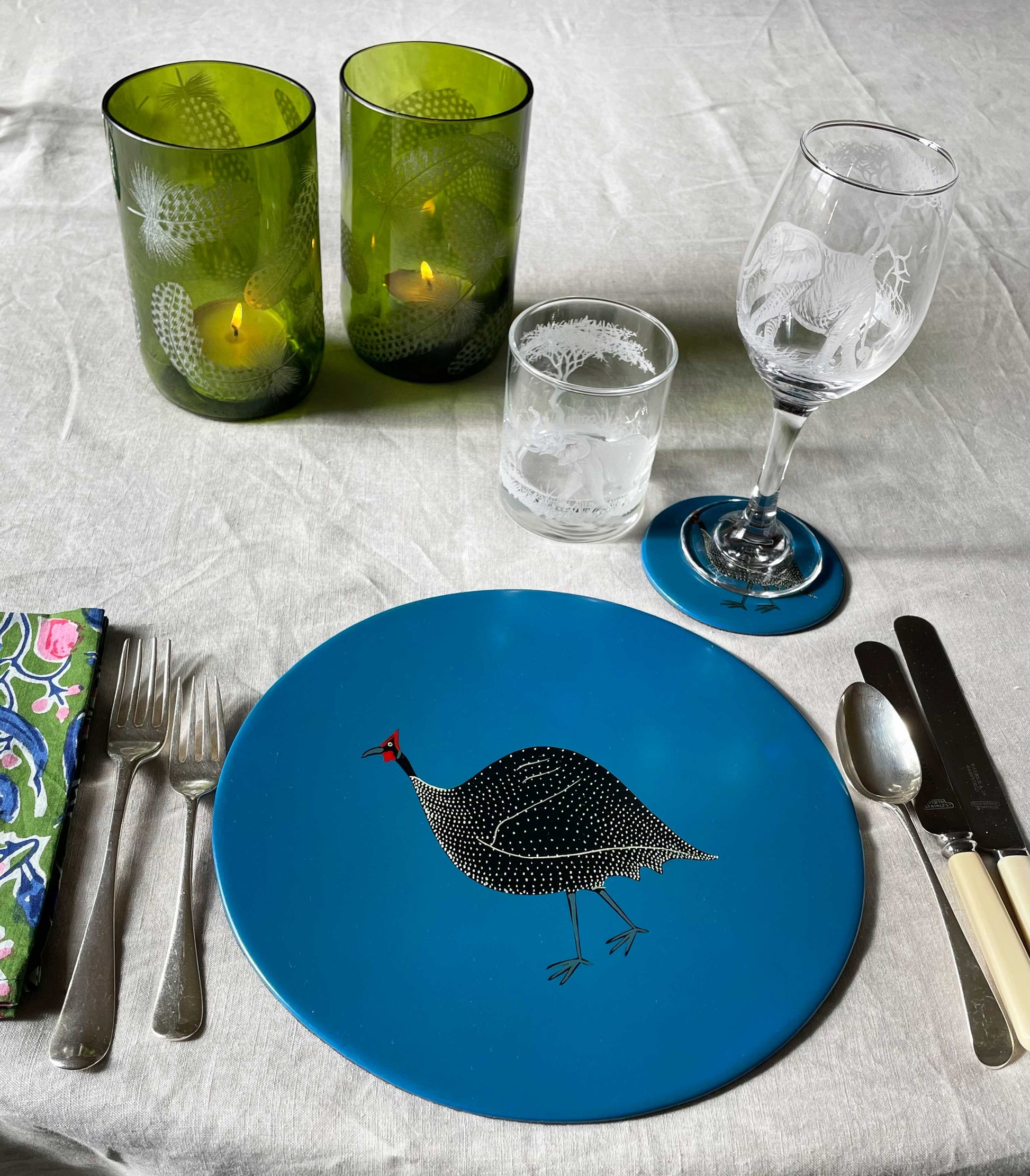 Wine Glasses, Engraved with African Animals in Banana Fibre presentation Box